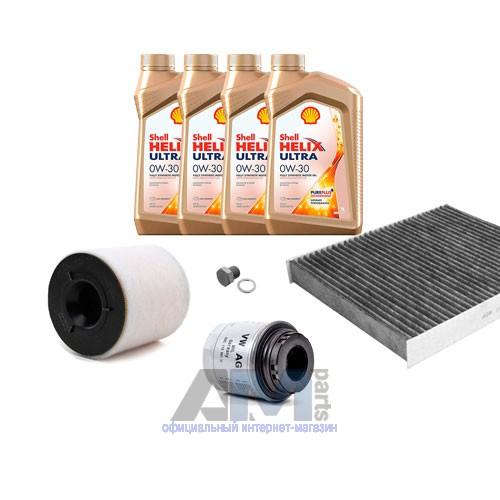 В Наборе ТО собраны оригинальные расходные материалы для прохождения ТО фильтры и моторное масло Shell Helix Ultra 0W30 AV-L (допуск VW 504 00/507 00) или А3 0W30 (допуск VW 502 00/505 00).