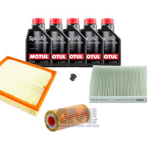 Состав набора ТО: Масло моторное Castrol Edge Professional LL III 5W30 (504/507) или 0W30 (502/505) или Shell Helix Ultra- 5 л. Фильтр масляный- 1 шт. Фильтр воздушный- 1 шт. Фильтр салона- 1 шт. Пробка масляного поддона (пластик)- 1 шт.