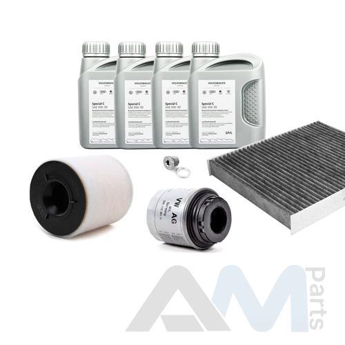 Состав набора ТО: Оригинальное моторное масло VAG Long Life III- 4 л.Оригинальный масляный фильтр 03C115561H- 1 шт.;Оригинальный воздушный фильтр 6R0129620A- 1 шт.;Оригинальный салонный фильтр 6R0820367- 1 шт.;Пробка масляного поддона с кольцом- 1 шт. Пробка масляного поддона с кольцом- 1 шт.