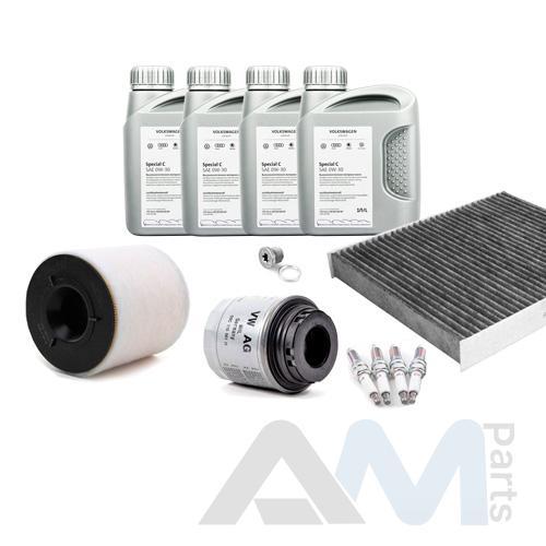 Состав набора ТО: Масло моторное Shell Helix 0W30 (допуск 502/505 или AV-L 504/507) - 4 л.Масляный фильтр VAG 03C115561H- 1 шт.;Воздушный фильтр VAG 6R0129620A- 1 шт.;Салонный фильтр VAG 6R0820367- 1 шт.; Свечи зажигания- 101905626- 4 шт.Пробка масляного поддона с кольцом- 1 шт. Пробка масляного поддона с кольцом- 1 шт.
