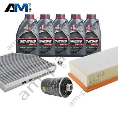 В Наборе ТО собраны оригинальные расходные материалы для прохождения ТО (фильтры и свечи) и масло LUKOil Special vn 5w-30 с допуском VAG 504 00/507 00.