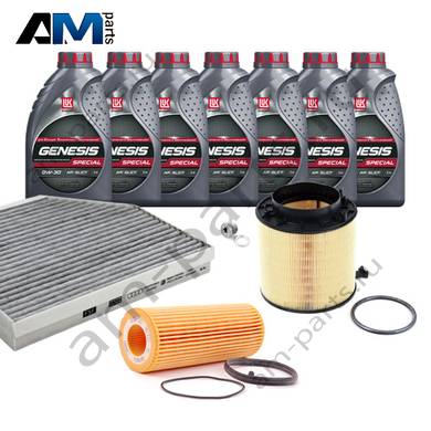 В Наборе ТО собраны оригинальные расходные материалы для прохождения ТО (фильтры и свечи) и масло LUKOil Special A3/B4 0w30 с допуском VAG 502 00/505 00.