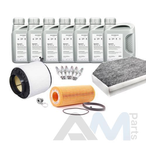 Состав набора ТО: Оригинальное моторное масло VAG- Special C 0W30 (допуск 502/505)- 7 л.Оригинальный масляный фильтр 06E115562A- 1 шт.;Оригинальный воздушный фильтр 8K0133843- 1 шт.;Оригинальный салонный фильтр 8K0819439B- 1 шт.;Пробка масляного поддона с кольцом- 1 шт. Пробка масляного поддона с кольцом- 1 шт.