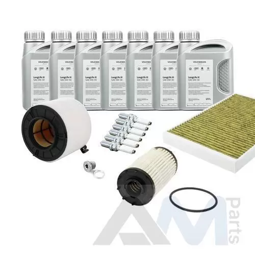 Состав набора ТО: Оригинальное моторное масло VAG Long Life III- 7 л.Масляный фильтр 06M198405F- 1 шт.Воздушный фильтр 8W0133843- 1 шт.Салонный фильтр 4M0819439B- 1 шт.Пробка масляного поддона с кольцом- 1 шт. Пробка масляного поддона с кольцом- 1 шт.