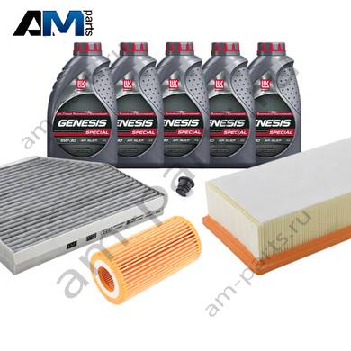 В Наборе ТО собраны оригинальные расходные материалы для прохождения ТО (фильтры и свечи) и масло LUKOil Special vn 5w-30 с допуском VAG 504 00/507 00.