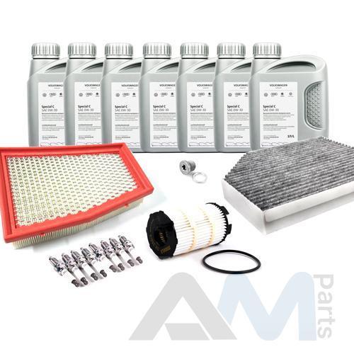 Состав набора ТО: Оригинальное моторное масло VAG Long Life III- 7 л.Оригинальный масляный фильтр 079198405E- 1 шт.;Оригинальный воздушный фильтр 8T0133843A- 1 шт.;Оригинальный салонный фильтр 8K0819439B- 1 шт.; Оригинальные свечи зажигания 06H905601A- 8 шт.Пробка масляного поддона с кольцом- 1 шт. Пробка масляного поддона с кольцом- 1 шт.