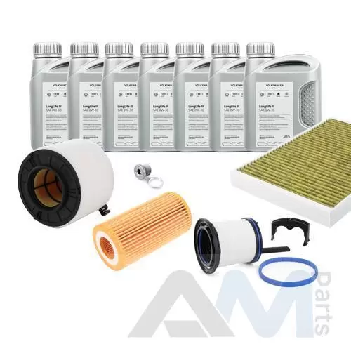 В Наборе ТО собраны оригинальные расходные материалы для прохождения ТО (фильтры и свечи) и оригинального моторного масла Long Life 3 0W30 (допуск VW 504 00/507 00)- !!!ДЛЯ ЕВРОПЕЙСКОГО РЫНКА!!!.