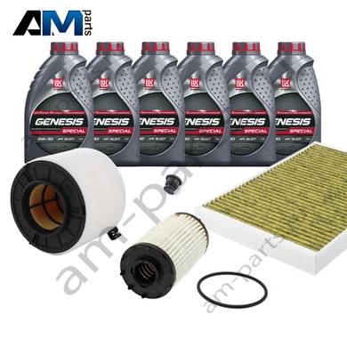 Состав набора ТО: Оригинальное моторное масло VAG- Special C 0W30 (допуск 502/505)- 7 л.Оригинальный масляный фильтр 06M198405F- 1 шт.Оригинальный воздушный фильтр 8W0133843- 1 шт.Оригинальный салонный фильтр 4M0819439B- 1 шт.Пробка масляного поддона с кольцом- 1 шт. Пробка масляного поддона с кольцом- 1 шт.
