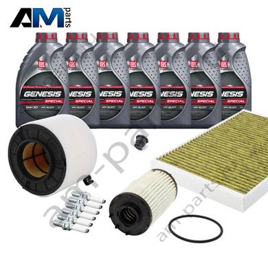 Состав набора ТО: Оригинальное моторное масло VAG- Special C 0W30 (допуск 502/505)- 7 л.Оригинальный масляный фильтр 06M198405F- 1 шт.Оригинальный воздушный фильтр 8W0133843- 1 шт.Оригинальный салонный фильтр 4M0819439B- 1 шт.Пробка масляного поддона с кольцом- 1 шт. Пробка масляного поддона с кольцом- 1 шт.