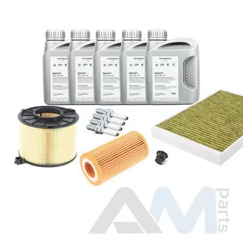 Состав набора ТО: Оригинальное моторное масло VAG Long Life III (504/507)- 5 л.Оригинальный масляный фильтр 06L115562B- 1 шт. Оригинальный воздушный фильтр 4K0133844E- 1 шт. Оригинальный салонный фильтр 4M0819439B- 1 шт. Пробка масляного поддона с кольцом- 1 шт. Оригинальные свечи зажигания 06K905601B- 4 шт.