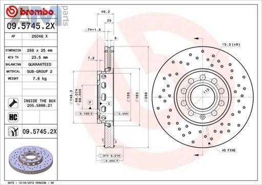 Каталожный номер детали: 09.5745.2X.