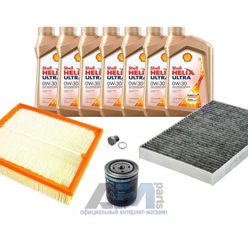Состав набора ТО: Масло моторное Castrol Edge Professional LL III 5W30 (504/507) или 0W30 (502/505) или Shell Helix Ultra- 7 л. Фильтр масляный- 1 шт. Фильтр воздушный- 1 шт. Фильтр салона- 1 шт. Пробка масляного поддона с кольцом- 1 шт.
