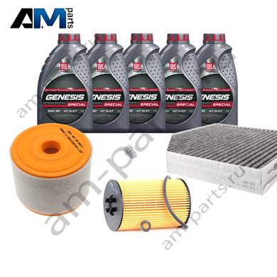 В Наборе ТО собраны оригинальные расходные материалы для прохождения ТО (фильтры и свечи) и масло LUKOil Special vn 5w-30 с допуском VAG 504 00/507 00.