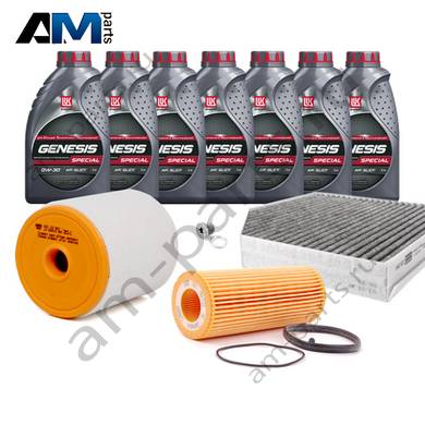 Состав набора ТО: Моторное масло - 7 л. Масляный фильтр VAG 06E115562C- 1 шт. Воздушный фильтр VAG 4G0133843- 1 шт. Салонный фильтр VAG 4H0819439- 1 шт. Пробка масляного поддона с кольцом- 1 шт.