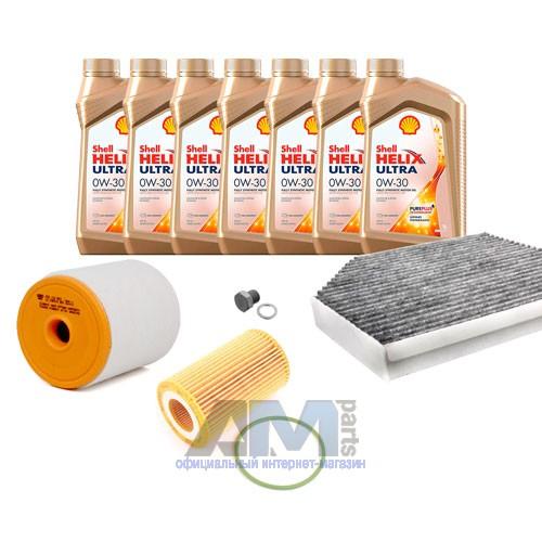 В Наборе ТО собраны оригинальные расходные материалы для прохождения ТО (фильтры и свечи) и моторное масло Shell Helix Ultra 0W30 AV-L (допуск VW 504 00/507 00) или А3 0W30 (допуск VW 502 00/505 00).