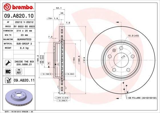 Каталожный номер Brembo: 09.A820.11.