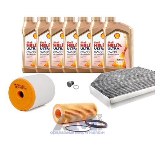 В Наборе ТО собраны оригинальные расходные материалы для прохождения ТО фильтры и моторное масло Shell Helix Ultra 0W30 AV-L (допуск VW 504 00/507 00) или А3 0W30 (допуск VW 502 00/505 00).