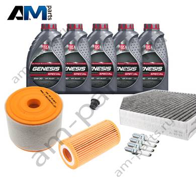 В Наборе ТО собраны оригинальные расходные материалы для прохождения ТО (фильтры и свечи) и масло LUKOil Special vn 5w-30 с допуском VAG 504 00/507 00.
