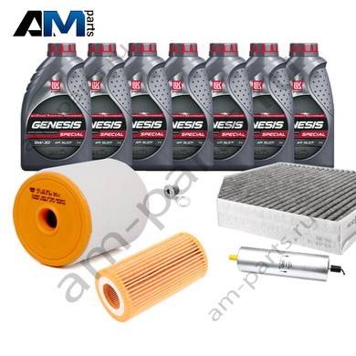 Состав набора ТО: Оригинальное моторное масло VAG Long Life III- 7 л.Оригинальный масляный фильтр 059198405B- 1 шт.Оригинальный воздушный фильтр 4G0133843- 1 шт.Оригинальный салонный фильтр 4H0819439- 1 шт.Оригинальный топливный фильтр 4G0127401- 1 шт.Пробка масляного поддона с кольцом- 1 шт. Пробка масляного поддона с кольцом- 1 шт.