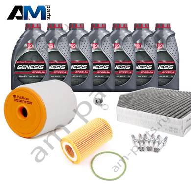 Состав набора ТО: Оригинальное моторное масло VAG Long Life III- 7 л.Оригинальный масляный фильтр 06E115562H- 1 шт.Оригинальный воздушный фильтр 4G0133843- 1 шт.Оригинальный салонный фильтр 4H0819439- 1 шт.Оригинальные свечи зажигания 101905611G- 6 шт.Пробка масляного поддона с кольцом- 1 шт. Пробка масляного поддона с кольцом- 1 шт.