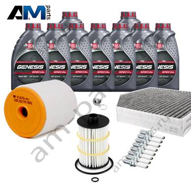 Состав набора ТО: Масло LukOil 5W30 504/507- 9 л. Масляный фильтр- 079198405D Воздушный фильтр- 4G0133843 Салонный фильтр- 4H0819439