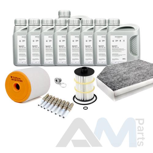 В Наборе ТО собраны оригинальные расходные материалы для прохождения ТО (фильтры и свечи) и оригинального моторного масла Special C 0W30 (допуск VW 502 00/505 00).