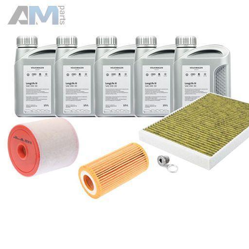 Состав набора ТО: Масло моторное Castrol LL III 5W30 (504/507) 5 л. Фильтр масляный 06L115562B- 1 шт. Фильтр воздушный 4K0133844E- 1 шт. Фильтр салона угольный 4M0819439B- 1 шт. Пробка масляного поддона с кольцом- 1 шт.
