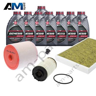 В Наборе ТО собраны оригинальные расходные материалы для прохождения ТО (фильтры и свечи) и масло LUKOil Special A3/B4 5w40 с допуском VAG 502 00/505 00.