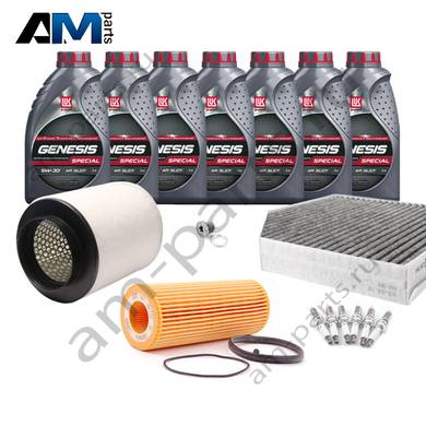 Состав набора ТО: Масло моторное Shell Helix 0W30 (допуск 502/505 или AV-L 504/507) - 7 л.Масляный фильтр VAG 06E115562A- 1 шт.;Воздушный фильтр VAG 4H0129620L- 1 шт.;Салонный фильтр VAG 4H0819439- 1 шт.; Свечи зажигания- 101905611G- 4 шт.Пробка масляного поддона с кольцом- 1 шт. Пробка масляного поддона с кольцом- 1 шт.