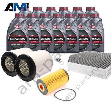 Состав набора ТО: Оригинальное моторное масло VAG- Special C 0W30 (допуск 502/505)- 13 л.Оригинальный масляный фильтр 07C115562E- 1 шт.;Оригинальный воздушный фильтр 4H0129620M- 2 шт.;Оригинальный салонный фильтр 4H0819439- 1 шт.;Пробка масляного поддона с кольцом- 1 шт. Пробка масляного поддона с кольцом- 1 шт.