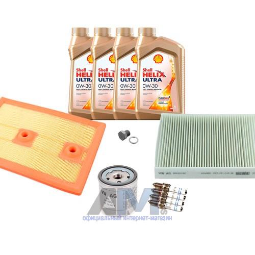 В Наборе ТО собраны оригинальные расходные материалы для прохождения ТО (фильтры и свечи) и моторное масло Shell Helix Ultra 0W30 AV-L (допуск VW 504 00/507 00) или А3 0W30 (допуск VW 502 00/505 00).