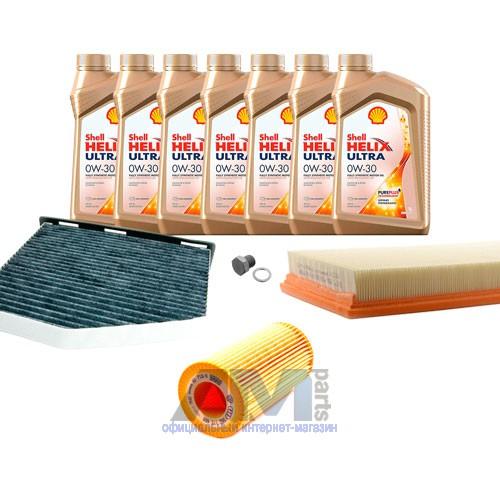 В Наборе ТО собраны оригинальные расходные материалы для прохождения ТО фильтры и моторное масло Shell Helix Ultra 0W30 AV-L (допуск VW 504 00/507 00) или А3 0W30 (допуск VW 502 00/505 00).
