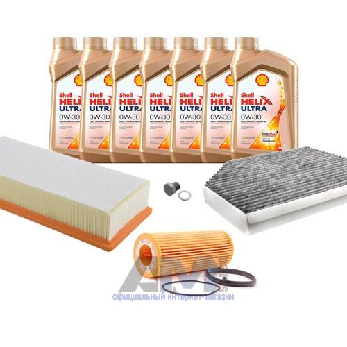 В Наборе ТО собраны оригинальные расходные материалы для прохождения ТО фильтры и моторное масло Shell Helix Ultra 0W30 AV-L (допуск VW 504 00/507 00) или А3 0W30 (допуск VW 502 00/505 00).