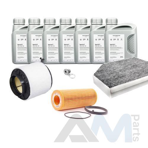 Состав набора ТО: Оригинальное моторное масло VAG Long Life III- 7 л.Оригинальный масляный фильтр 06E115562A- 1 шт.;Оригинальный воздушный фильтр 8K0133843- 1 шт.;Оригинальный салонный фильтр 8K0819439B- 1 шт.;Оригинальные свечи зажигания 101905631F- 6 шт.Пробка масляного поддона с кольцом- 1 шт. Пробка масляного поддона с кольцом- 1 шт.
