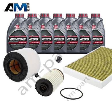 Состав набора ТО: Моторное масло - 7 л. Масляный фильтр VAG 06M198405F- 1 шт. Воздушный фильтр VAG 8W0133843- 1 шт. Салонный фильтр VAG 4M0819439B- 1 шт. Свечи зажигания- 06M905606F- 6 шт. Пробка масляного поддона с кольцом- 1 шт.