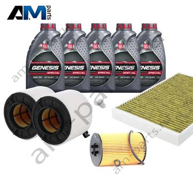 Состав набора ТО: Оригинальное моторное масло VAG Long Life III (504/507)- 5 л. Оригинальный масляный фильтр 03N115562B- 1 шт. Оригинальный воздушный фильтр 8W0133843A- 1 шт. Оригинальный угольный фильтр салона 4M0819439B- 1 шт. Пробка масляного поддона N90813202- 1 шт.