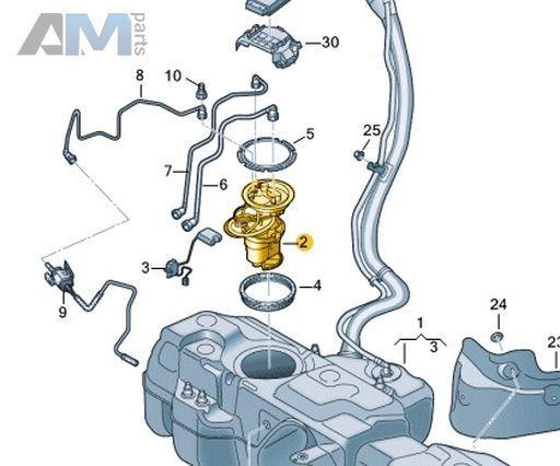 Датчик уровня топлива 4M0919047 поставляется отдельно. При замене необходима прокладка 1K0919133D.