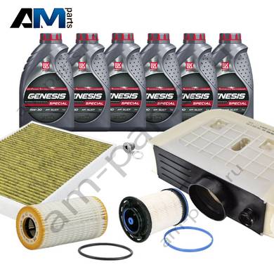 Состав набора ТО: Масло LukOil 5W30 504/507- 6 л. Масляный фильтр- 059198405D Воздушный фильтр- 4M0133843H Салонный фильтр- 4M0819439B