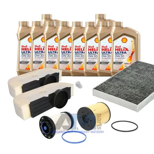 В Наборе ТО собраны оригинальные запчасти Фольксваген и масло Shell Helix Ultra 0W30 AV-L (допуск VW 504 00/507 00) или 0W30 (допуск VW 502 00/505 00). Наборы составлены согласно рекомендациям VAG.
