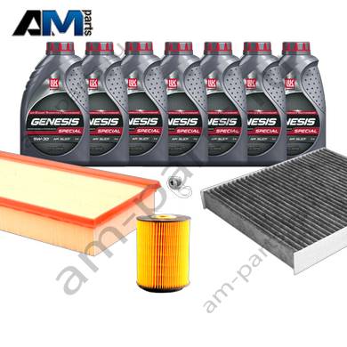 Состав набора ТО: Оригинальное моторное масло VAG- Special C 0W30 (допуск 502/505)- 7 л.Оригинальный масляный фильтр 021115562A- 1 шт.;Оригинальный воздушный фильтр 7L0129620- 1 шт.;Оригинальный салонный фильтр 7H0819631A- 1 шт.;Пробка масляного поддона с кольцом- 1 шт. Пробка масляного поддона с кольцом- 1 шт.