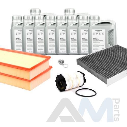 В Наборе ТО собраны оригинальные расходные материалы для прохождения ТО (фильтры и свечи) и оригинального моторного масла Special C 0W30 (допуск VW 502 00/505 00).