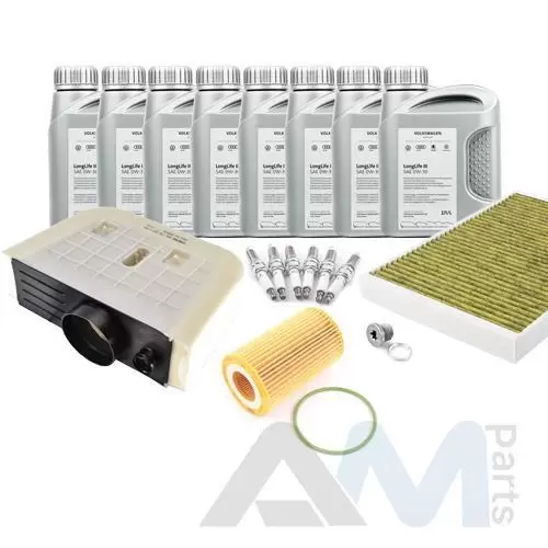 Состав набора ТО: Моторное масло - 8 л. Масляный фильтр VAG 06E115562H- 1 шт.; Воздушный фильтр VAG 4M0133843C- 1 шт.; Салонный фильтр VAG 4M0819439B- 1 шт.; Свечи зажигания- 101905611G- 6 шт. Пробка масляного поддона с кольцом- 1 шт.