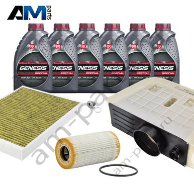 В Наборе ТО собраны оригинальные расходные материалы для прохождения ТО (фильтры и свечи) и масло LUKOil Special vn 5w-30 с допуском VAG 504 00/507 00.