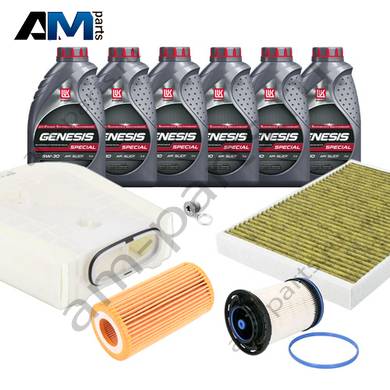 Состав набора ТО: Масло моторное Castrol LL III 5W30 (504/507) 6 л. Фильтр масляный 059198405B- 1 шт. Фильтр воздушный 4M0133843H- 1 шт. Фильтр салона угольный 4M0819439B- 1 шт. Пробка масляного поддона с кольцом- 1 шт.