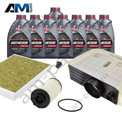 Состав набора ТО: Масло моторное Castrol LL III 5W30 (504/507)- 8 л. Фильтр масляный- 1 шт. Фильтр воздушный- 1 шт. Фильтр салона- 1 шт. Пробка масляного поддона с кольцом- 1 шт.