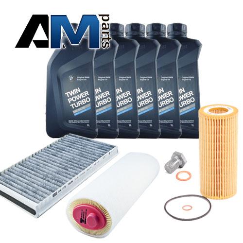Состав набора: Оригинальный масляный фильтр 11427787697- 1 шт. Оригинальный воздушный фильтр 13712246997- 1 шт. Оригинальный салонный фильтр 64319171858- 1 шт. Оригинальное моторное масло BMW- 6 л. Пробка масляного поддона 11137535106- 1 шт. Уплотнительное кольцо 7119963151- 1 шт.