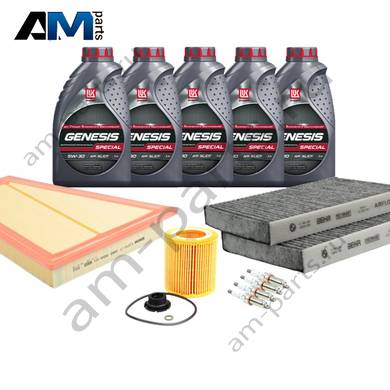Состав набора: Оригинальный масляный фильтр 11427953125- 1 шт. Оригинальный воздушный фильтр 13717582908- 1 шт. Оригинальный салонный фильтр 64116809933- 1 шт. Масло моторное Castrol 5W30 (0W30)- 5 л. Пробка масляного поддона 11137605018- 1 шт.