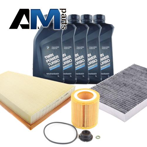 Состав набора: Оригинальный масляный фильтр 11427953125- 1 шт. Оригинальный воздушный фильтр 13717582908- 1 шт. Оригинальный салонный фильтр 64116809933- 1 шт. Оригинальное моторное масло BMW- 5 л. Пробка масляного поддона 11137605018- 1 шт.
