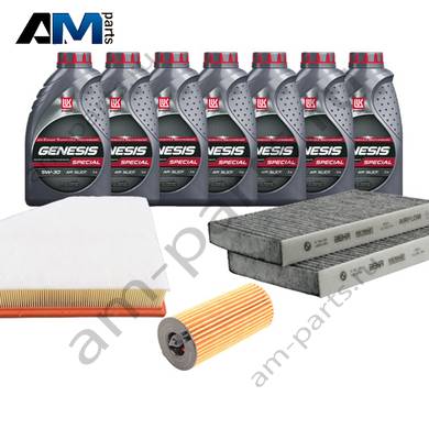 Состав набора: Оригинальный масляный фильтр 11427808443- 1 шт. Оригинальный воздушный фильтр 13717800151- 1 шт. Оригинальный салонный фильтр 64116809933- 1 шт. Масло моторное Castrol 5W30 (0W30)- 7 л. Пробка масляного поддона 11137535106- 1 шт. Уплотнительное кольцо 7119963132- 1 шт.