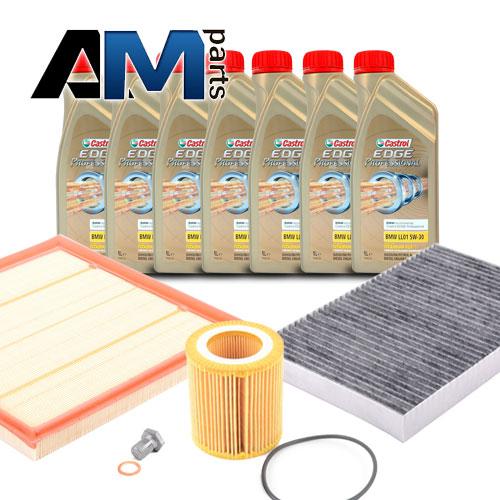 Состав набора: Оригинальный масляный фильтр 11427953129- 1 шт. Оригинальный воздушный фильтр 13717571355- 1 шт. Оригинальный салонный фильтр 64116809933- 1 шт. Масло моторное Castrol 5W30 (0W30)- 7 л. Пробка масляного поддона 11137535106- 1 шт. Уплотнительное кольцо 7119963151- 1 шт.